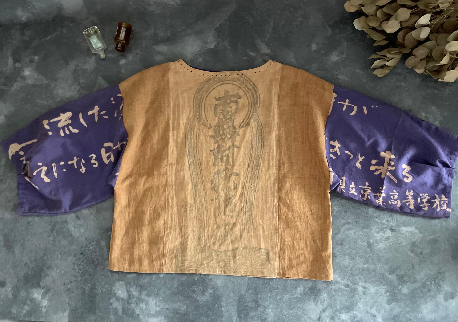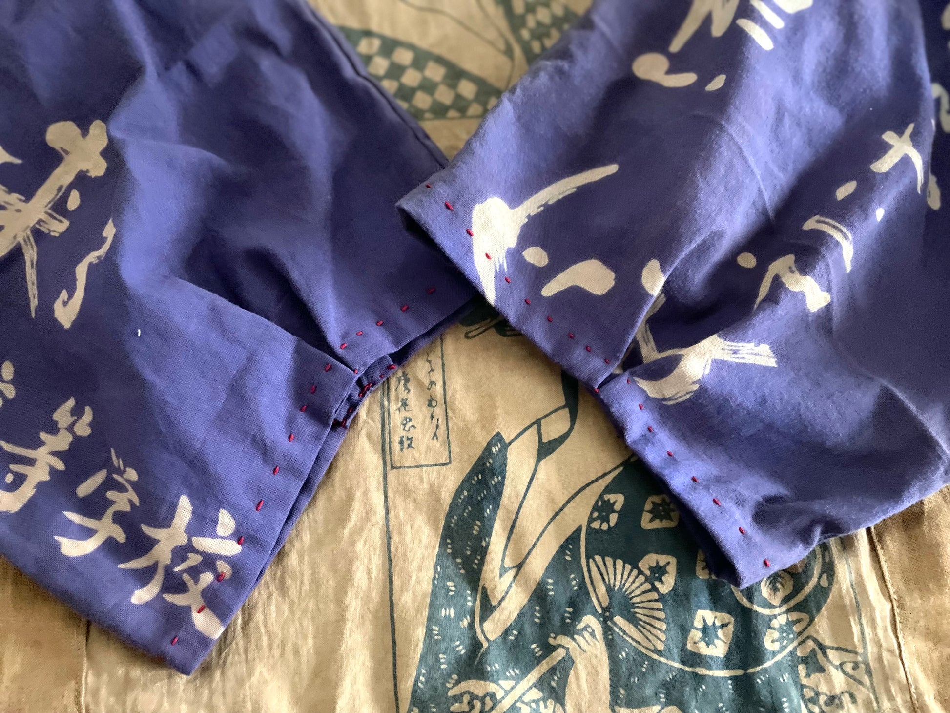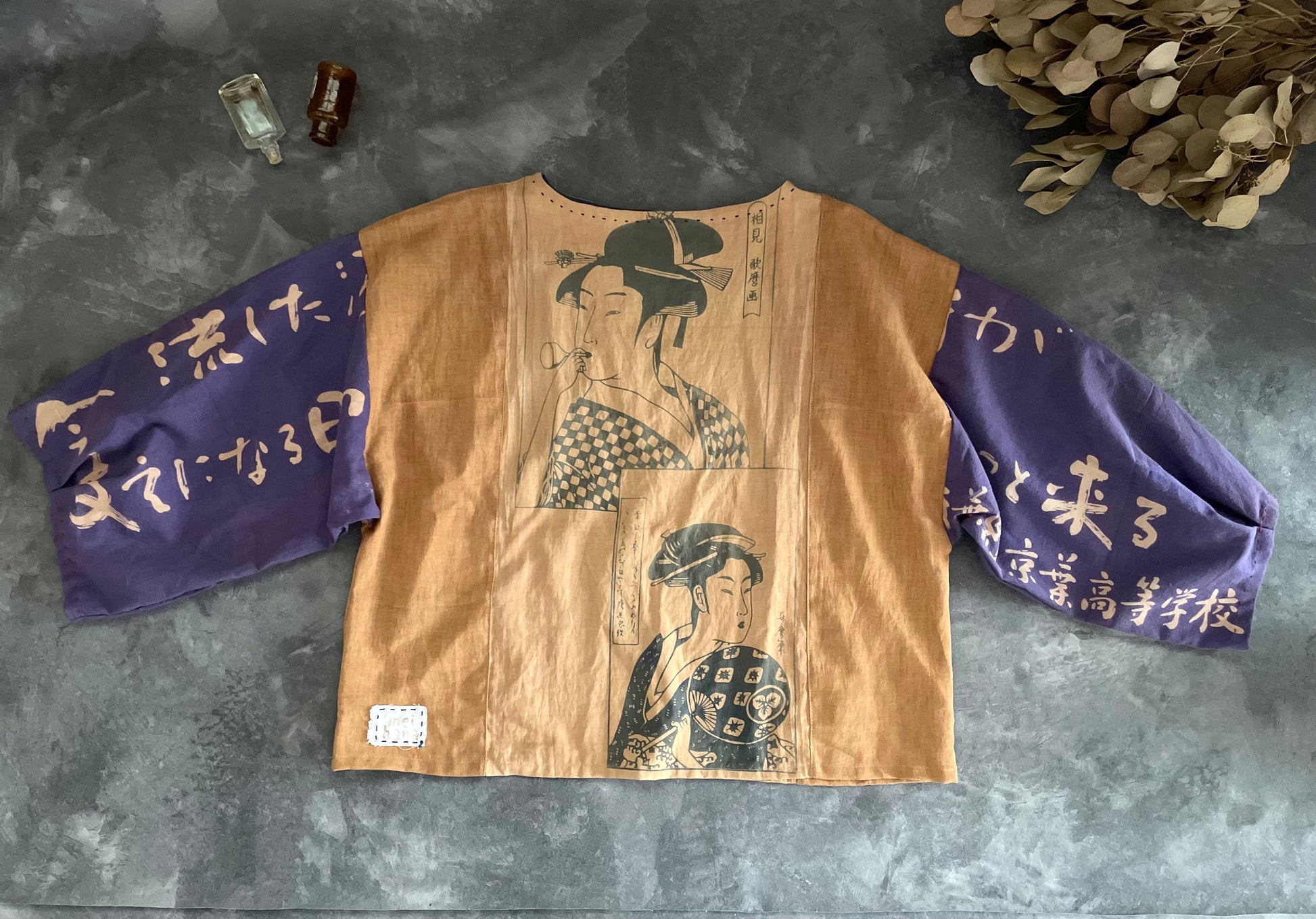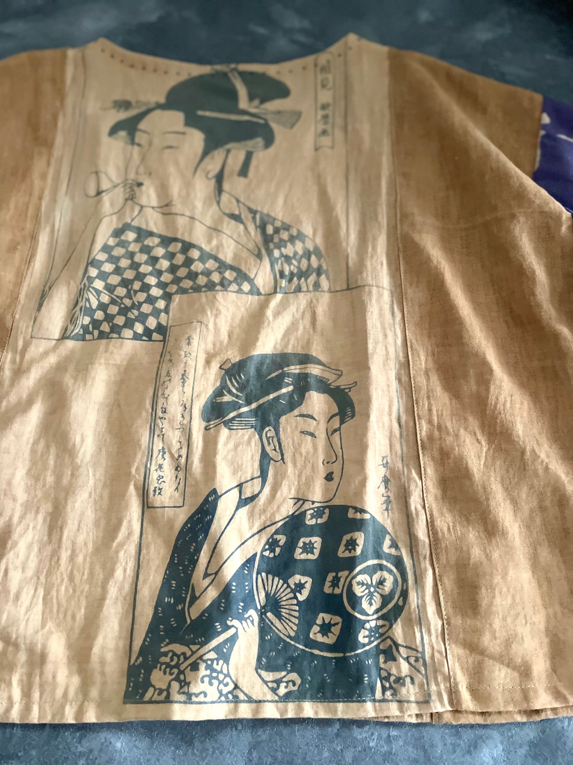 J'ai réalisé des hauts avec du tenugui teint avec du jus de kaki.