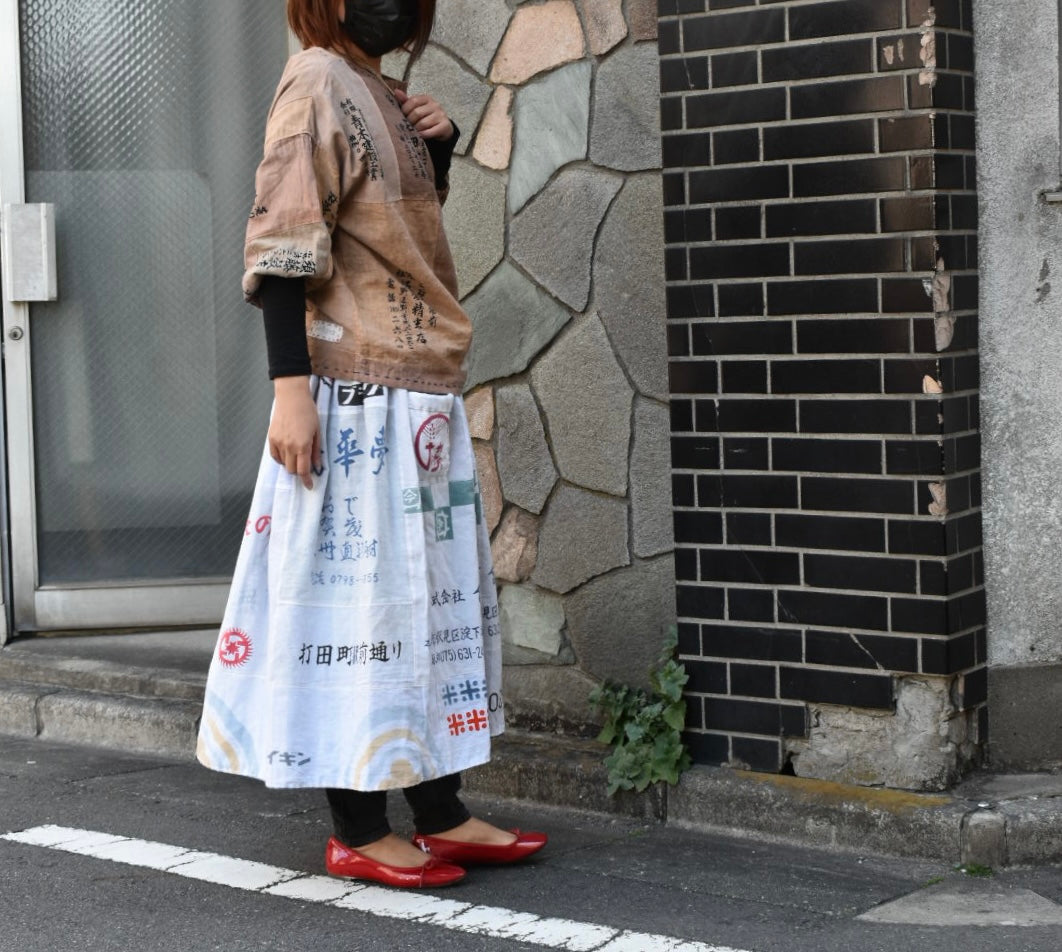 白い手ぬぐいと藍染めの手ぬぐいのリバーシブルスカートです。